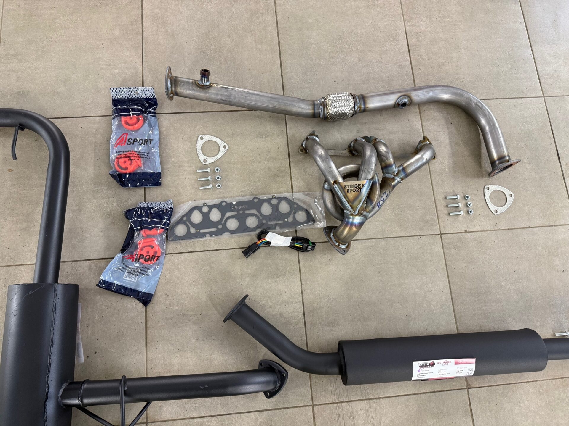 5. Монтажный комплект (прокладки, удлинитель датчика кислорода, подвесы к кузову)